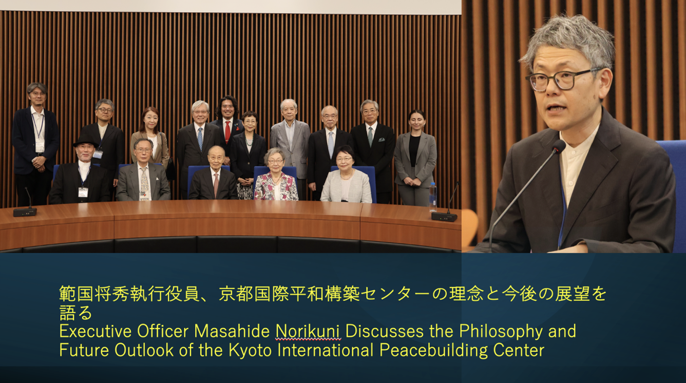 At the 2025 Council Meeting of the Kyoto International Peacebuilding Center (KPC), Masahide Norikuni, Executive Officer of KPC, delivered remarks reflecting on the founding philosophy, progress, and future outlook of the Center. His speech addressed the renewal of collaboration with the Academic Council on the United Nations System (ACUNS), the guiding vision of “Art as a Nation”, and the increasingly international character of Kyoto University of the Arts.