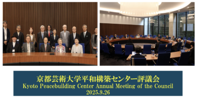 Kyoto Peacebuilding Center of Kyoto University of Arts Holds 2025 Advisory Board Meeting. (26/09/2025) 2025-09-26 0 comment Kyoto Peacebuilding Center of Kyoto University of the Arts held its 20… Read More >>
