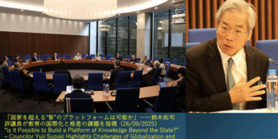 「国家を超える“智”のプラットフォームは可能か」――鈴木佑司評議員が教育の国際化と格差の課題を指摘(26/09/2025) 2025-09-26 0 comment 京都国際平和構築センターの評議会において、同センター評議員であり日本ユネスコ協会連盟理事長の鈴木佑司氏が、杉村美紀上智大学学長の基調講演を受… Read More >>