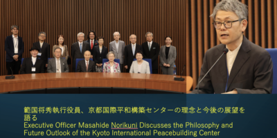 範國将秀執行役員、京都国際平和構築センターの理念と今後の展望を語る ― 京都国際平和構築センター評議会にて (26/09/2025) 2025-09-26 0 comment 京都国際平和構築センター(KPC)執行役員の範國将秀氏は、2025年度評議会において、センター創設の理念とこれまでの歩み、そして今後の展望に… Read More >>
