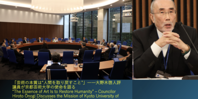 「芸術の本質は“人間を取り戻すこと”」――大野木啓人評議員が京都芸術大学の使命を語る(26/09/2025) 2025-09-26 0 comment 京都国際平和構築センターの評議会において、同センター評議員である大野木啓人氏が、芸術の意義と京都芸術大学の果たすべき役割について、強い信念を… Read More >>