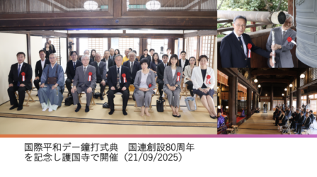 2025年9月21日、東京・大本山護国寺において「国際平和デー鐘打式典」が厳粛に開催された。本式典は、国連総会が定めた9月21日の国際平和デ…
