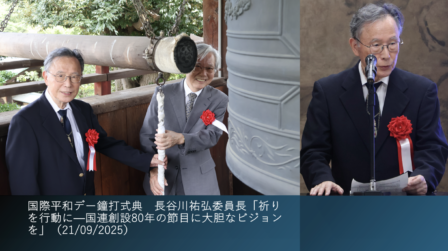 国際平和デー鐘打式典 長谷川祐弘委員長「祈りを行動に—国連創設80年の節目に大胆なビジョンを」(21/09/2025)