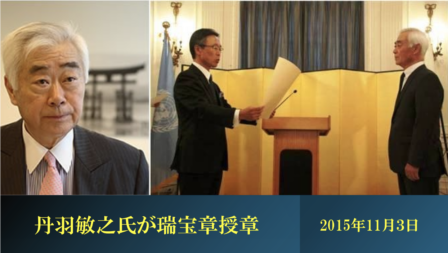丹羽敏之氏が瑞宝中綬章を受勲(3/11/2015)