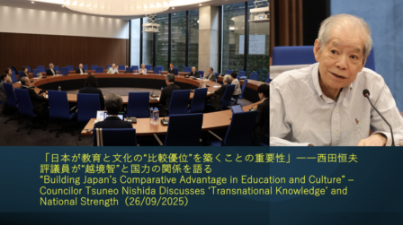 “Building Japan’s Comparative Advantage in Education and Culture” – Councilor Tsuneo Nishida Discusses ‘Transnational Knowledge’ and National Strength(26/09/2025)